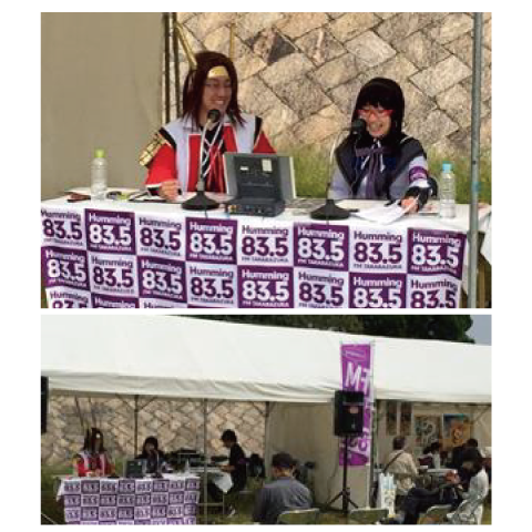 大劇場横武庫川河川敷の特設ブースにてFM宝塚「治虫くらぶ」の公開収録が行われました。