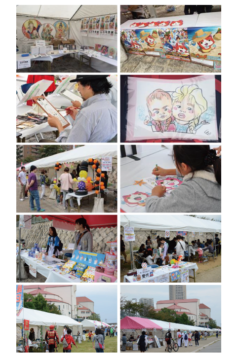 約7.000人が来場し、武庫川河川敷では、手塚治虫記念館のグッズや宝塚ブランド「モノ・コト・バ宝塚」選定品の販売、またアニメ関係のブースや塗り絵コーナーなども設けられ、親子連れをはじめ、多くの人でにぎわっていました。