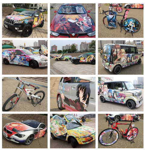 10月10日(土)、11日(日)ともに宝塚大劇場横武庫川河川敷ではキャラクターペイントカー、いわゆる「痛車(いたしゃ)」が展示されました。