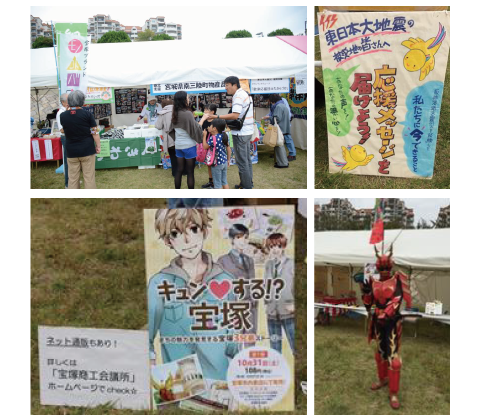 宝塚ブランド「モノ・コト・バ宝塚」の物産展や東北被災地支援ブースなど、地域を応援するブースが並びました。